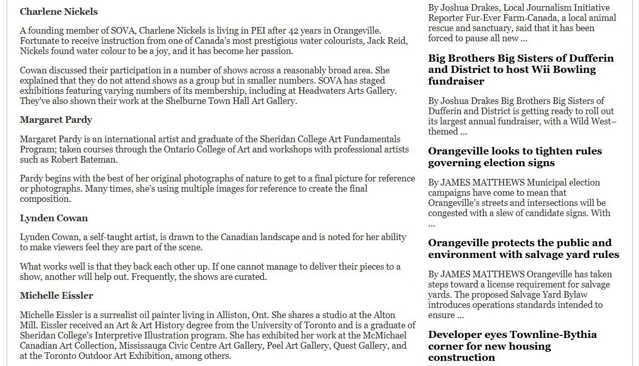 I have received various letters of commendation from noted Canadian galleries. I have been written up in the Toronto Globe and Mail, the Mississauga Times and the Brampton Guardian. I have won first place awards in various art competitions.