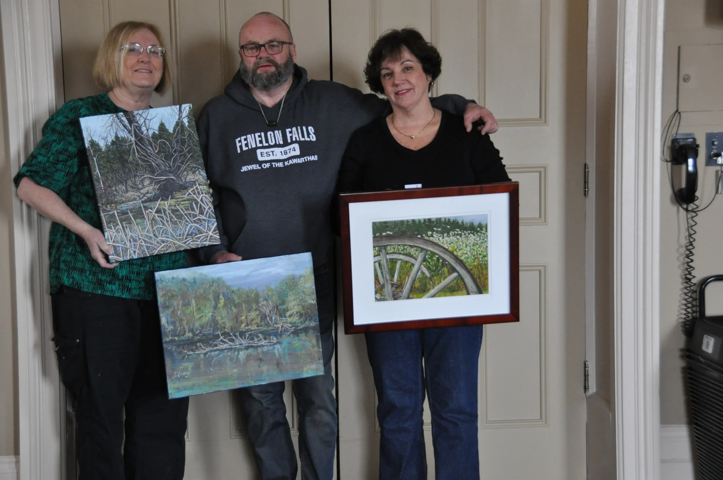 April has been extremely busy for everyone in the group. Pictured here is Lynden Cowan,Robert Chisholm and Charlene Nickels who have a small exhibition in Theatre Orangeville, and artworks will be on display until June 3rd. Address is 87 Broadway, Orangeville.