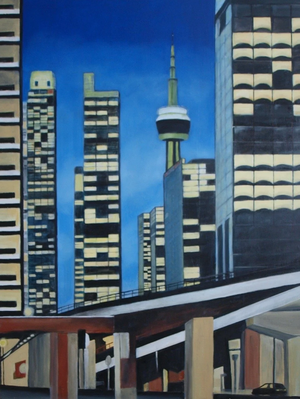 She enjoyed participating at the Wind in the Woods exhibit in October , and organized the exhibition at the Assembly Hall in Toronto. and now is working on a new body of work for the several SOVA exhibitions coming in 2023. Here is one of Helen’s wonderful recent artworks, titled Toronto.