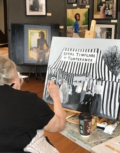 Most weekends you will find Sherry Park in her studio at the Alton Mill Arts Centre. Below the artist is working on a portrait commission.